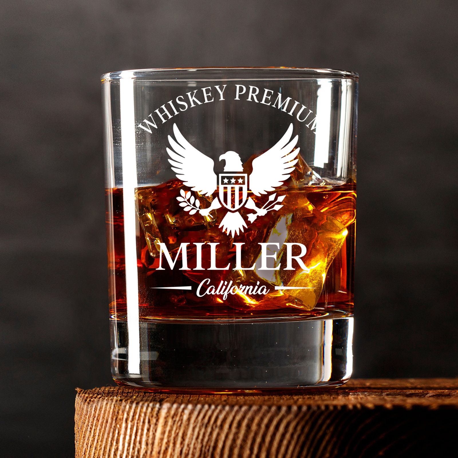Custom Prescription Whiskey Glass Fathers Gift Idea, Personalized Engraved Name Bourbon Glass, Old Fashioned Rocks Cocktail Glass Customizable Designs Gift for Him Husband Father Boss Friends