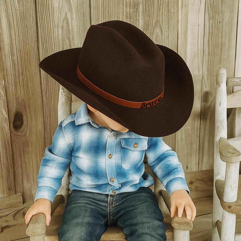Custom Toddler Cowboy Hat Age 2-8t, Personalized Boys Western Hat for Kids Men Women, Baby Leather Hatband Girls Cowgirl Hat