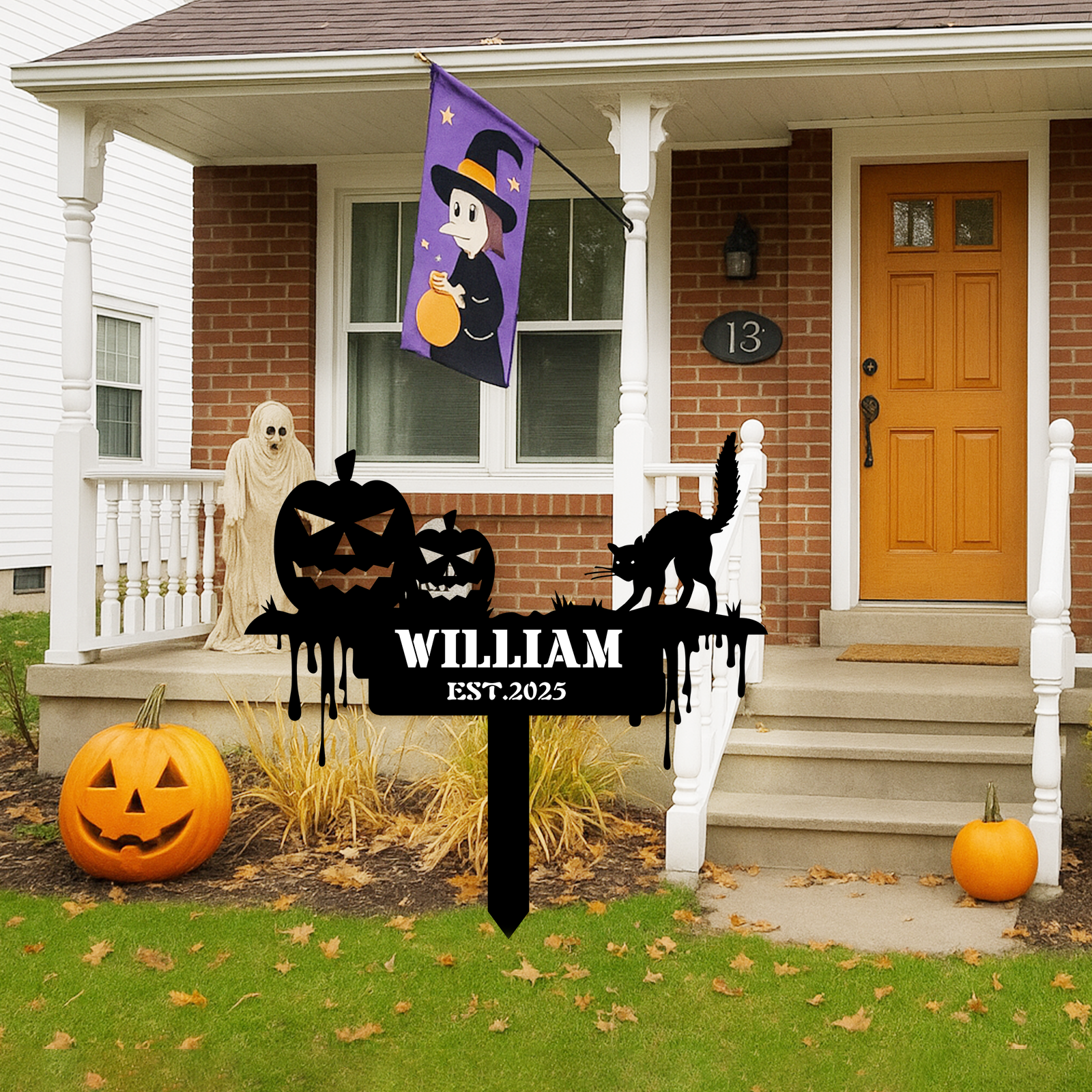 Custom Pumpkin Metal Garden Stake Halloween Metal Yard Art Sign Personalized Black Cat Scary Horror Outdoor Decor Spooky Season