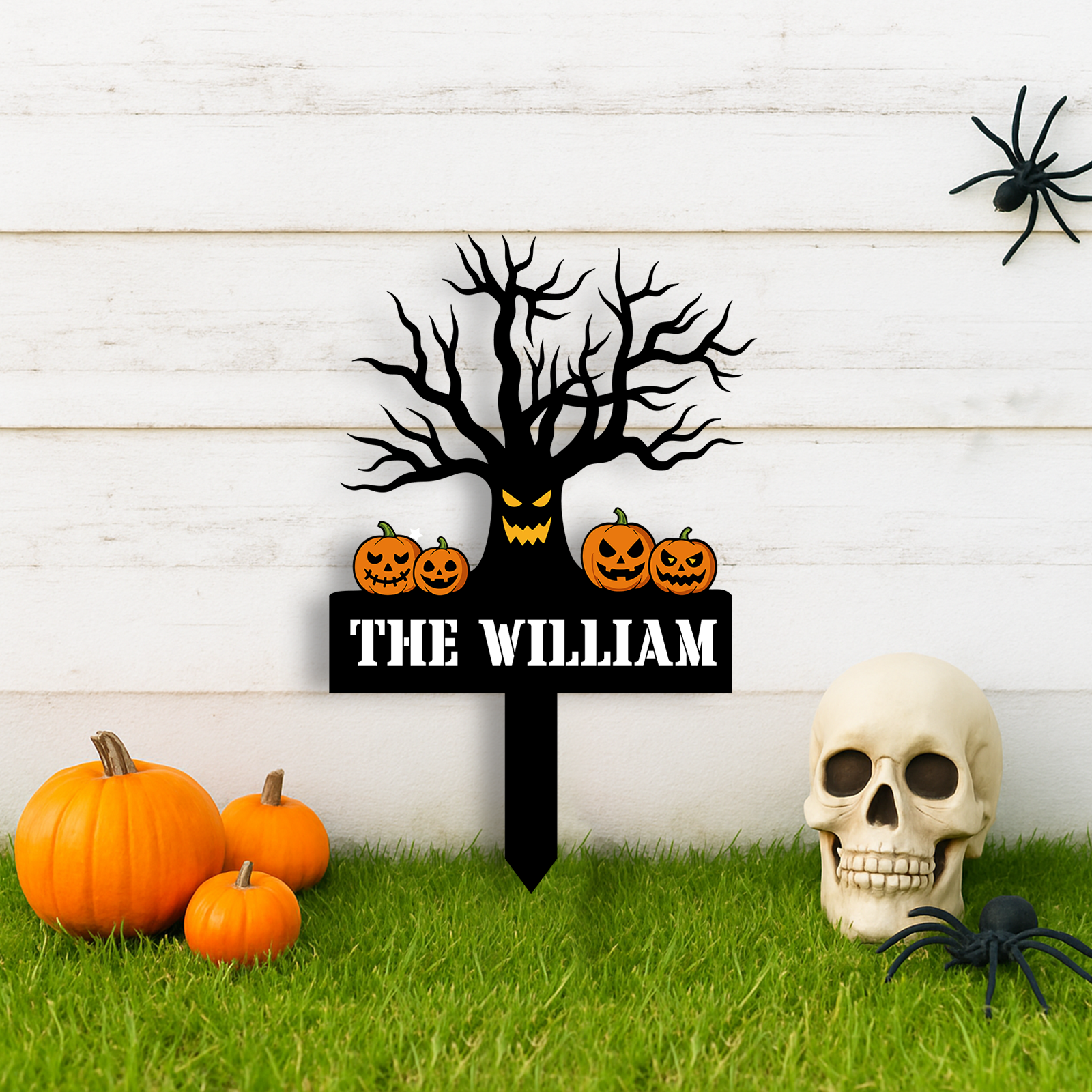 Personalized Skeleton Halloween Decor, Custom Halloween Outdoor Sign, Halloween Garden Sign, Metal Halloween Yard Stake, Custom Name Spooky Outdoor Decor