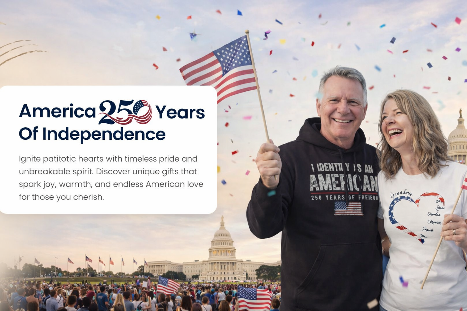 Custom Wood Sign - Personalized America 250th Anniversary Gifts For Mom, Dad, Brother, Sister, Kids - Freedom In Every Heart