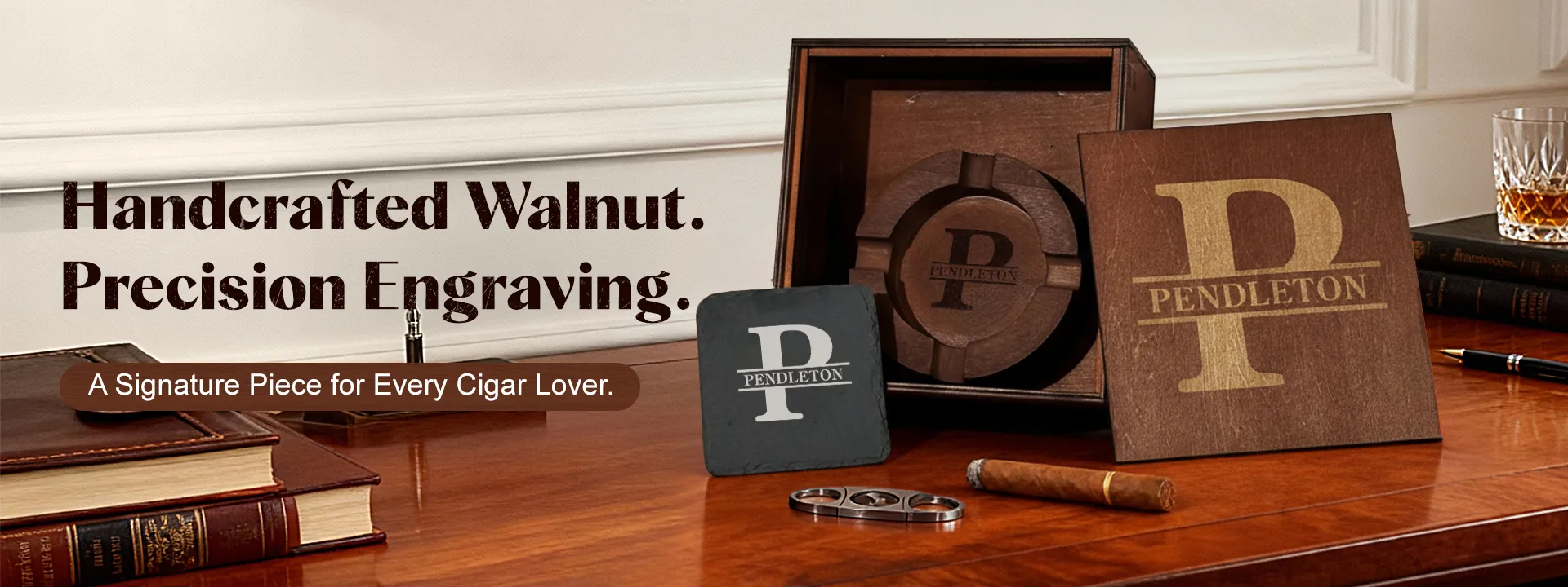 Personalized Name Walnut Cigar Ash Tray Personalized Cigar Cutter For Dad, Groomsman Gift Proposal Custom Cigar Accessories For Him