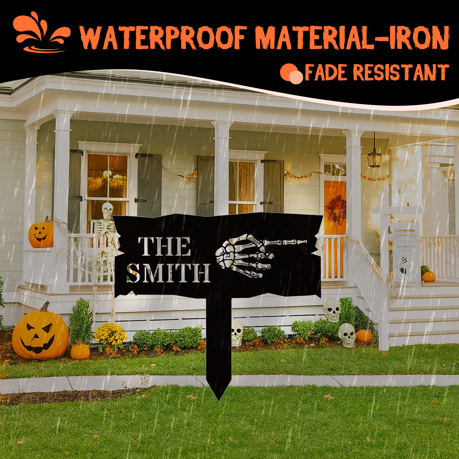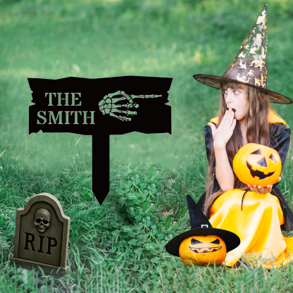 Personalized Halloween Metal Garden Stakes Custom Metal Garden Name Sign Halloween Outdoor Decor Personalized Halloween Skeleton hand Yard Stake