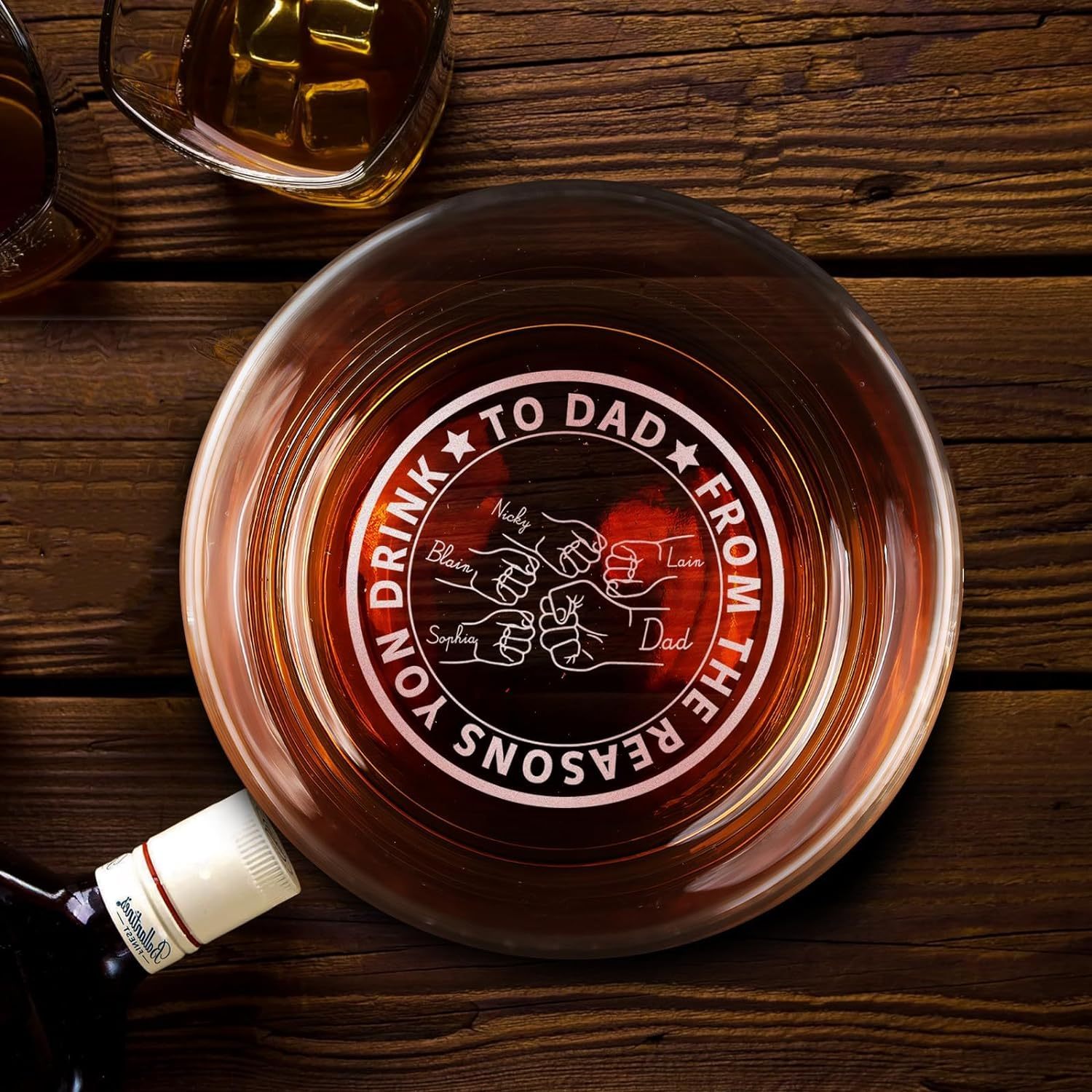 Personalized Whiskey Glass Fathers Gift Idea Custom Bottom Engraved Whiskey Glass For Dad