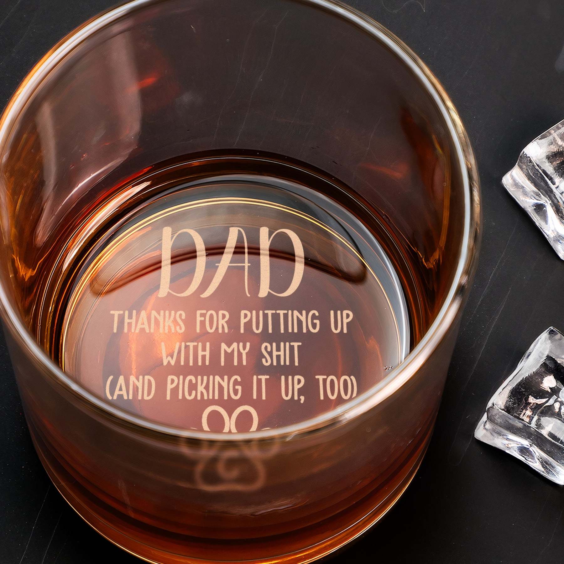 Dad Thanks For Putting Up With My S*** - Personalized Engraved Whiskey Glass