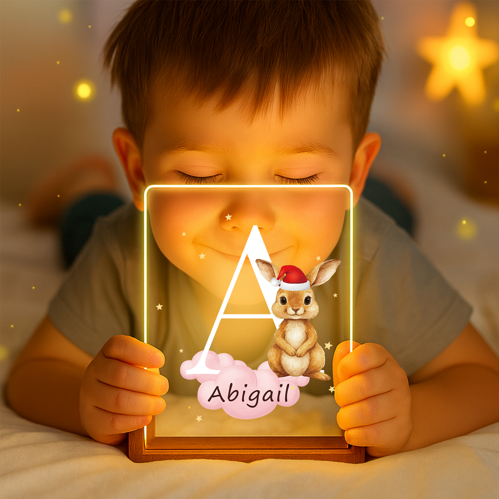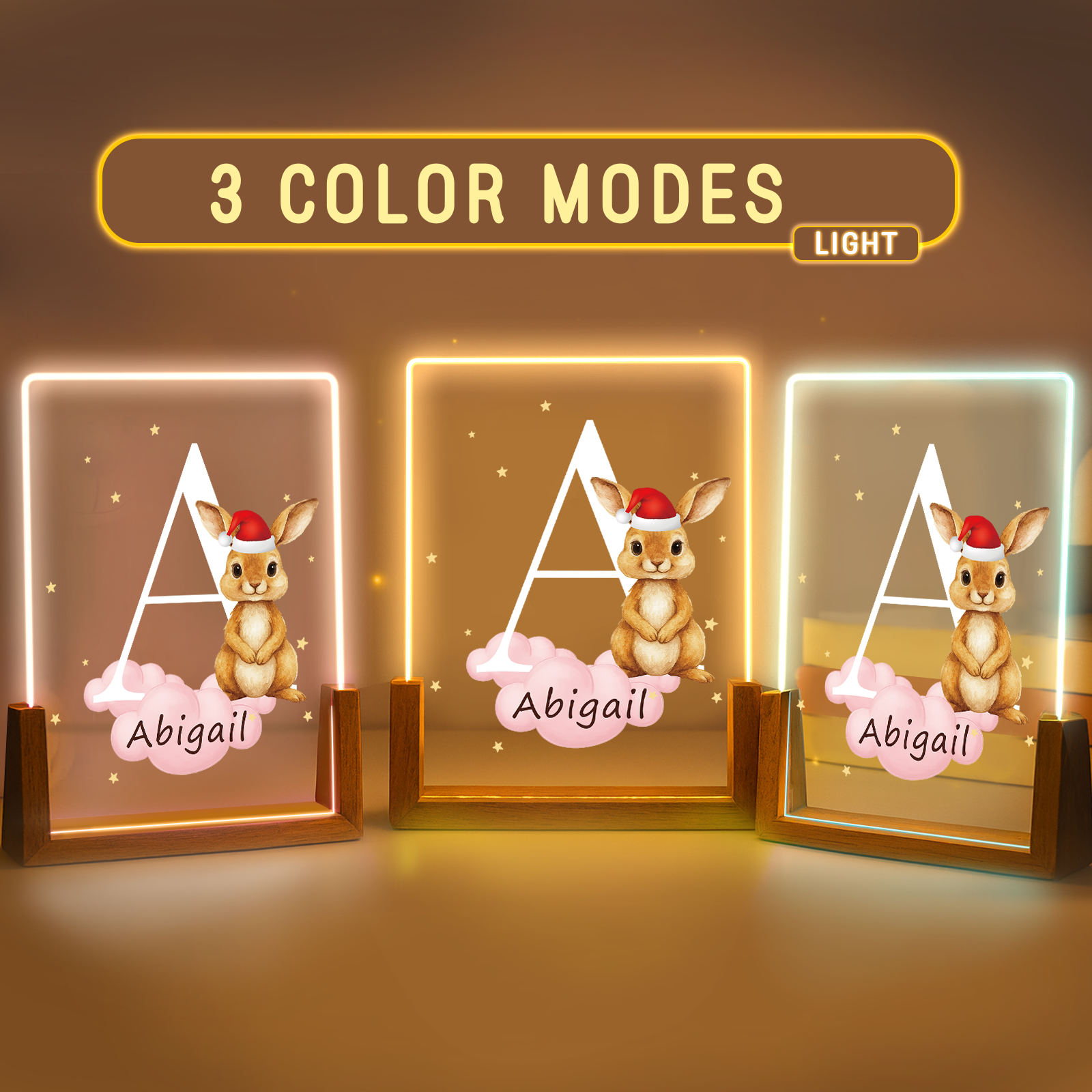 Personalized Cute Forest Animal Acrylic Cloud Star LED Night Light with Wooden Base Name and Initial Birthday Children's Day Gift for Boys Girls Baby Room Night Light Chirtmas Gift