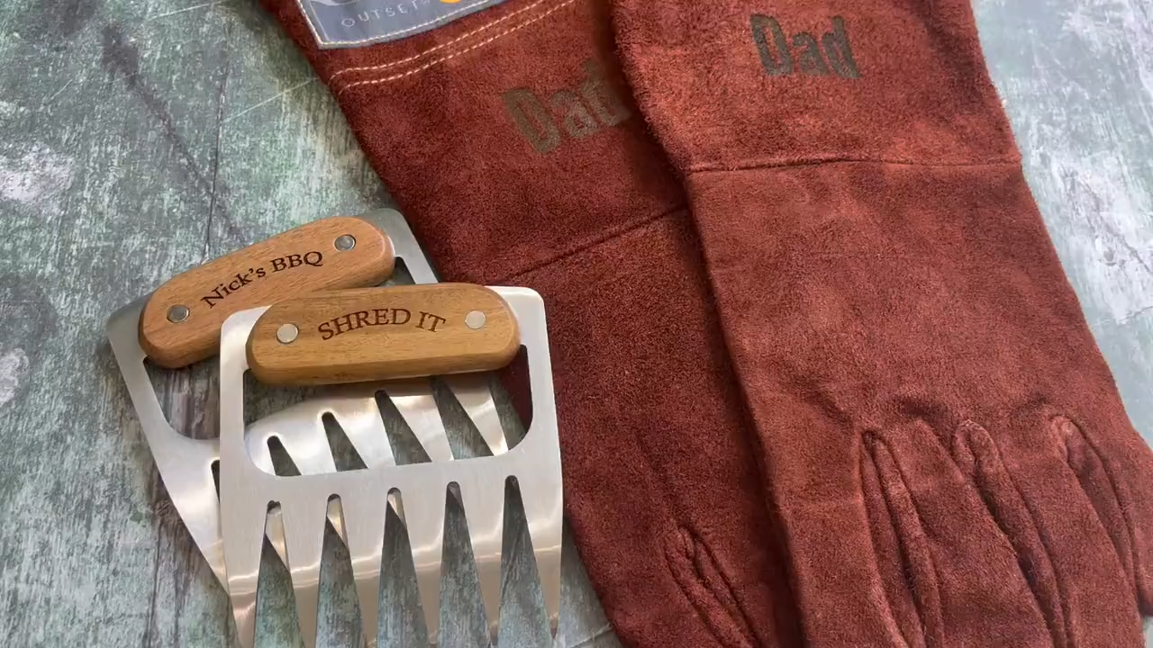 Personalized BBQ Meat Claw Shredders Wooden Barbeque Meat Claws Stainless Steel Tools BBQ Meat Lovers Gift Set of 2 Meat Claws Gift for Him