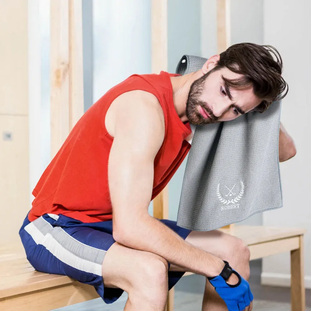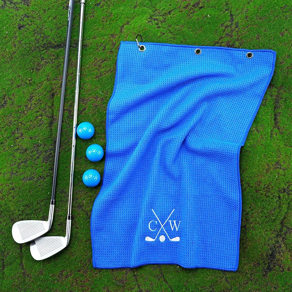 Personalized Embroidered Quick Dry Microfiber Waffle Golf Towel with Monogram and Carabiner Clip Golf Accessory Birthday Gift for Golf Lovers