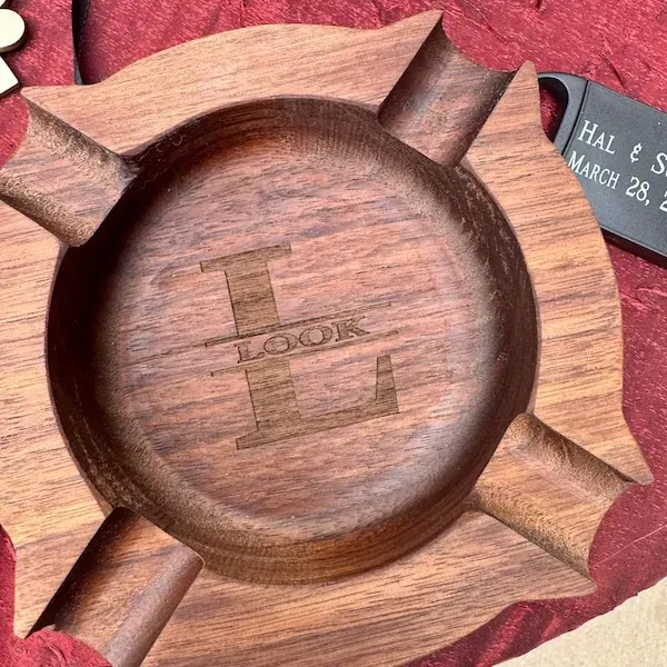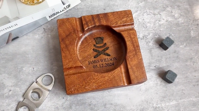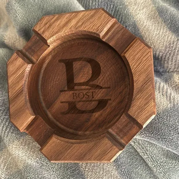 Introducing our personalized walnut wood cigar ashtray, the perfect gift for special occasions like weddings or graduations. Ideal for groomsmen, cigar enthusiasts, or friends, this unique accessory adds a touch of elegance to any celebration.