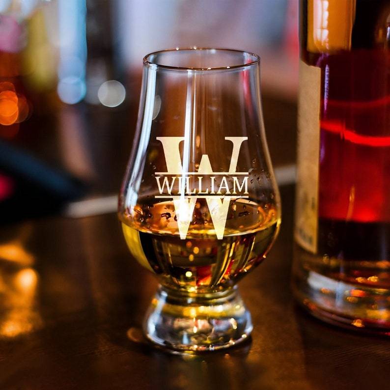 Personalized Whiskey Glass Gift for Men - Custom Monogram Bourbon Tasting Glass