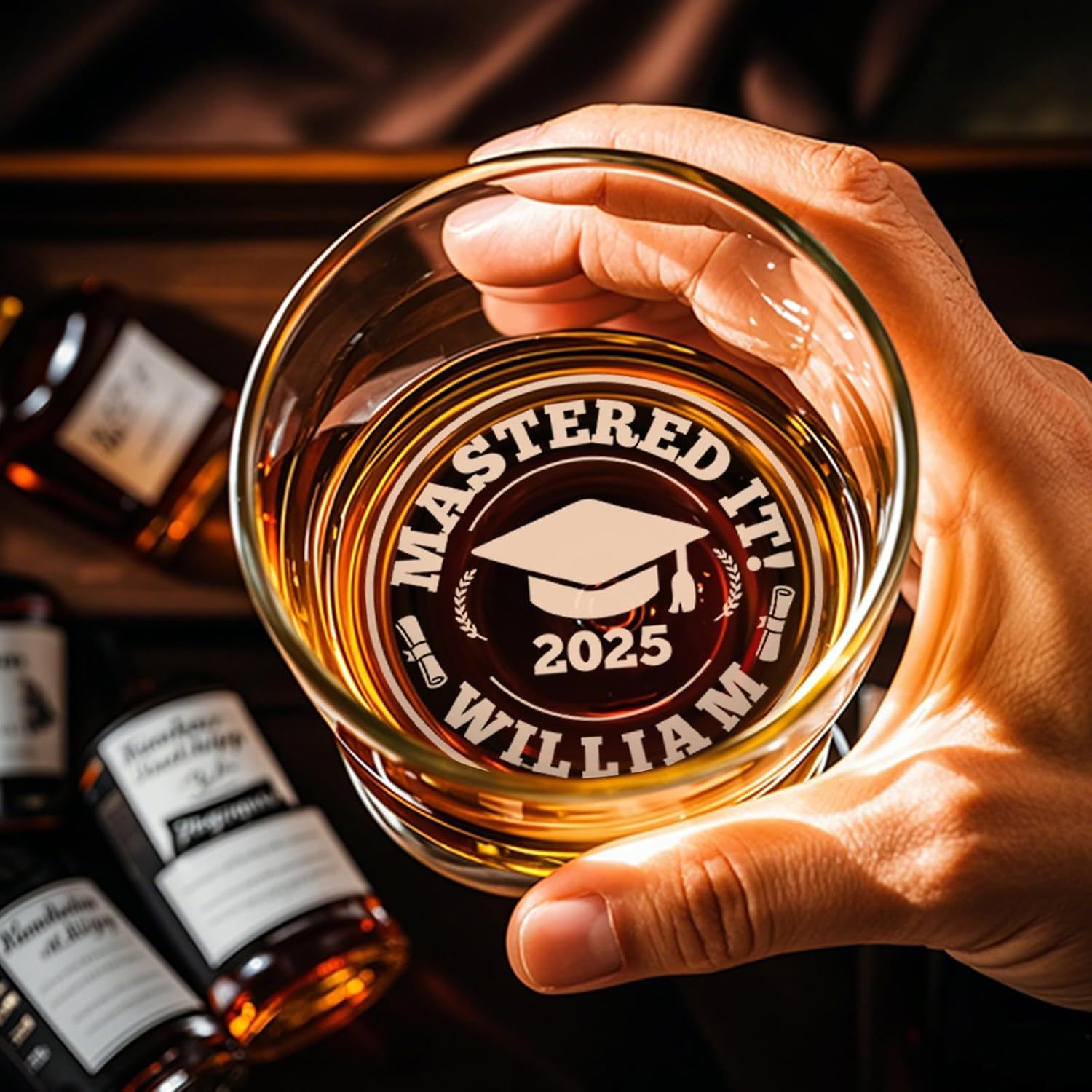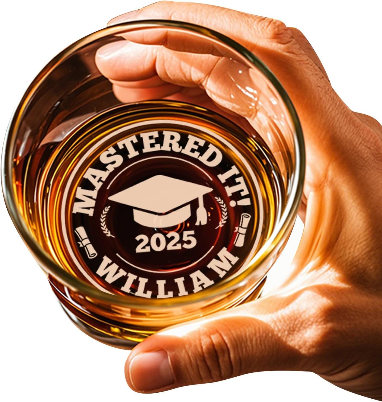 Personalized Whiskey Glass with Name - Custom Bottom Engraved Vodka Glasses Graduation Gifts Funny Gift for Men Friend Brother Family